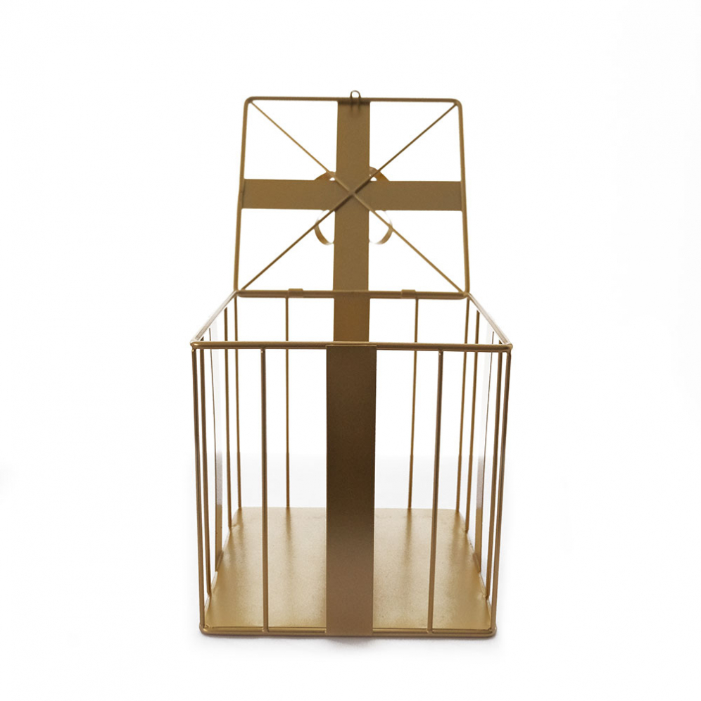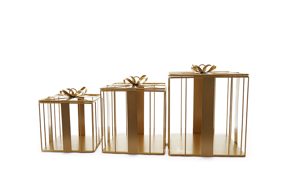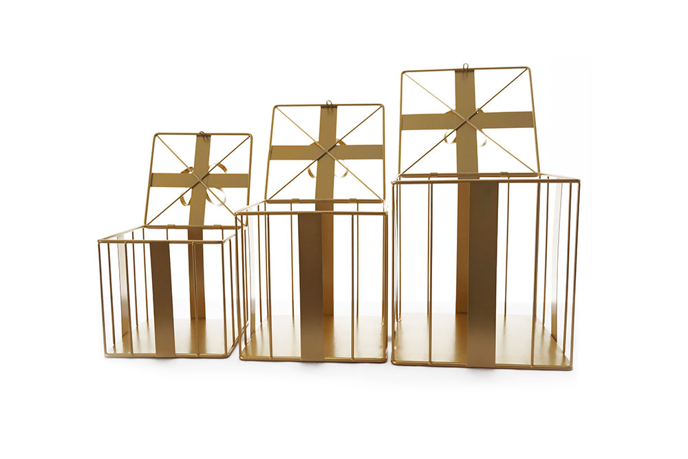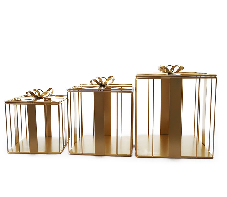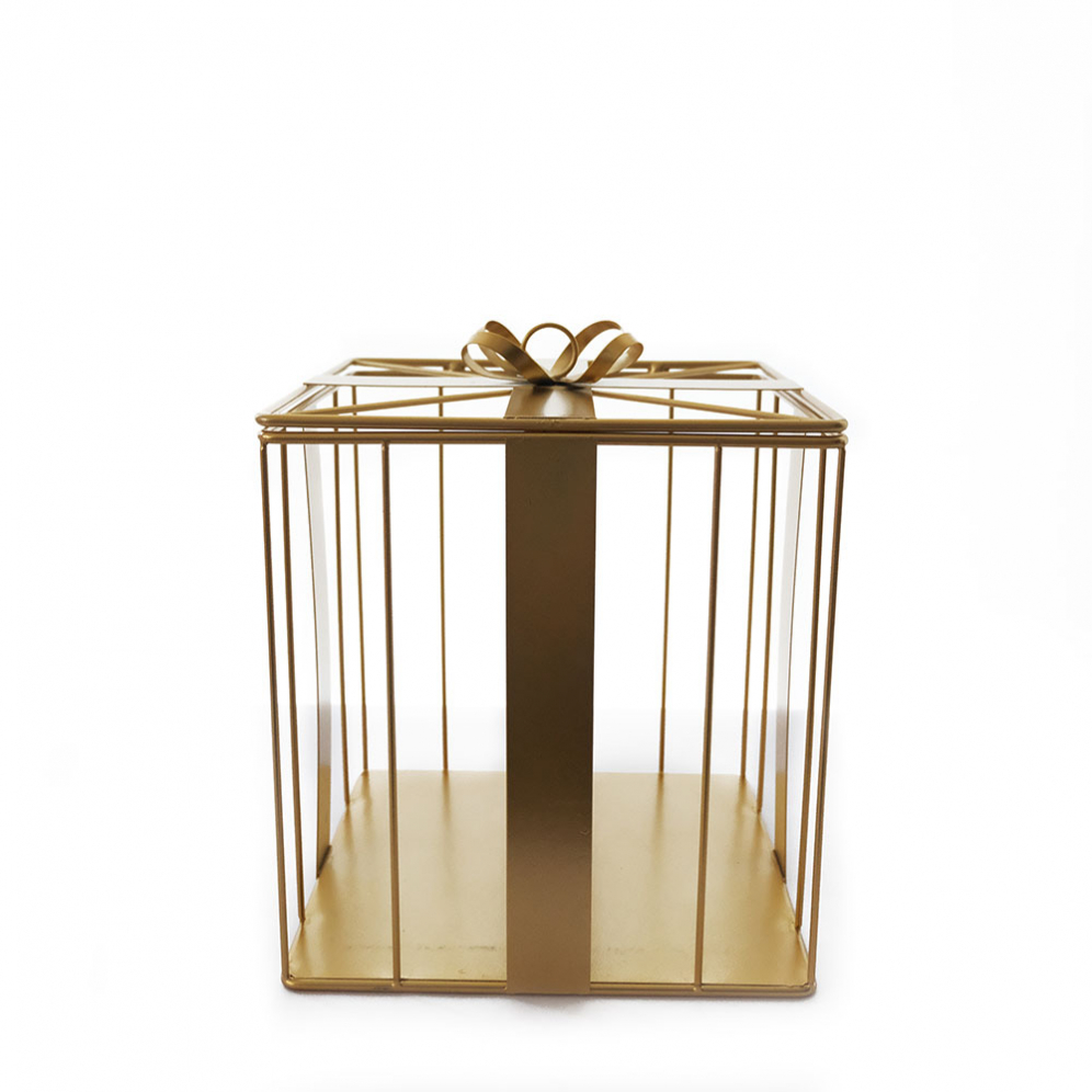 This is a very nice gold square gift cage. Make your gifts looks amazing. You can also use it for home decoration, party decoration, etc.