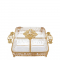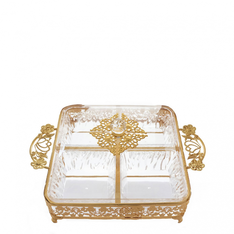 This gold four part container has beautiful, simple and very elegant ornaments. This gold glass container is ideal for storing small components, beads, stones, food, or other small items.