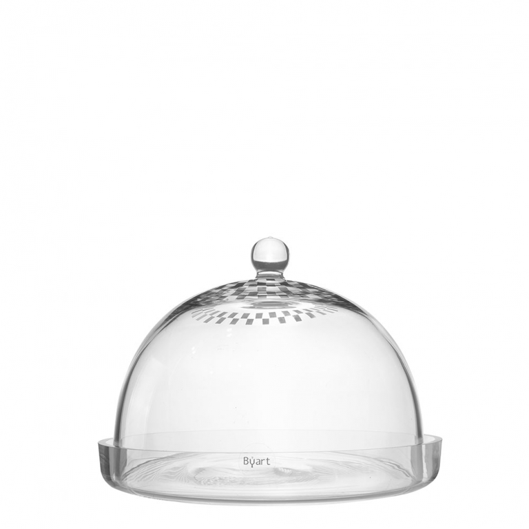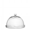 It’s made of clear glass. The cake lid curves down and has a round handle on it so it's easy to hold.