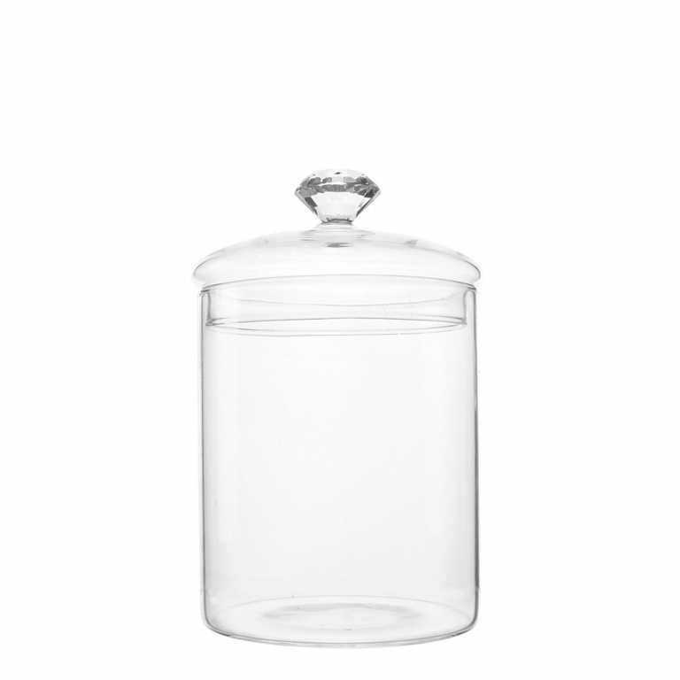 This beautiful and classical glass candy jar with diamond handle. This is simple and understatedly elegant. A jar for home decor, office decor, special gift or candy place.