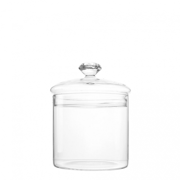 This beautiful and classical glass candy jar with diamond handle. This is simple and understatedly elegant. A jar for home decor, office decor, special gift or candy place.
