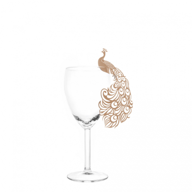 Peacock place cards perch on wine glasses, champagne flutes, or water goblets and are perfect as escort cards for your wedding, party, or event.