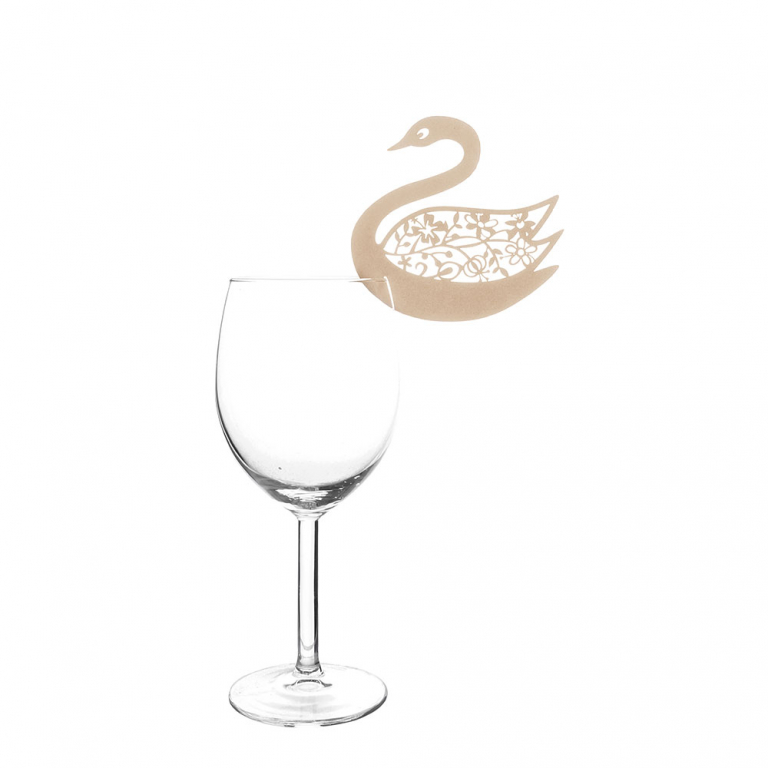 Swan place cards perch on wine glasses, champagne flutes, or water goblets and are perfect as escort cards for your wedding, party, or event.